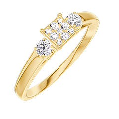 « L'ATELIER » NO. 209122Ring Yellow gold 9 carats - Cluster of natural diamonds Princess equivalent 0.3 - Ring settings Diamond white