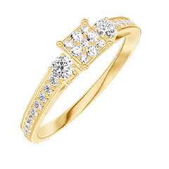 « L'ATELIER » NO. 209126Ring Yellow gold 9 carats - Cluster of natural diamonds Princess equivalent 0.3 - Ring settings Diamond white - Setting Diamond white