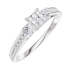 Ring White gold 18 carats - Cluster of natural diamonds Princess equivalent 0.3 - Ring settings Diamond white - Setting Diamond white