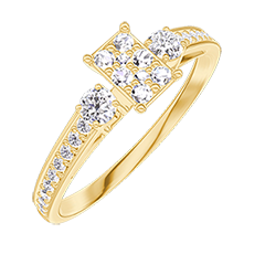 Ring Yellow gold 18 carats - Cluster of natural diamonds Baguette equivalent 0.3 - Ring settings Diamond white - Setting Diamond white
