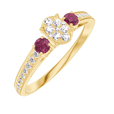 « L'ATELIER » NO. 209346Ring Yellow gold 9 carats - Cluster of natural diamonds Oval equivalent 0.3 - Ring settings Ruby - Setting Diamond white 5