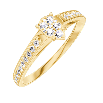 « L'ATELIER » Nº209406Ring Yellow gold 9 carats - Cluster of natural diamonds Pear equivalent 0.3 - Setting Diamond white