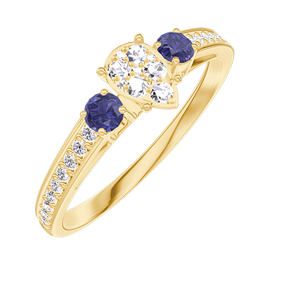 « L'ATELIER » Nº209465Ring Yellow gold 18 carats - Cluster of natural diamonds Pear equivalent 0.3 - Ring settings Blue Sapphire - Setting Diamond white