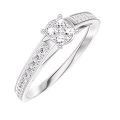 Ring White gold 18 carats - Cluster of natural diamonds round equivalent 0.5 - Setting Diamond white