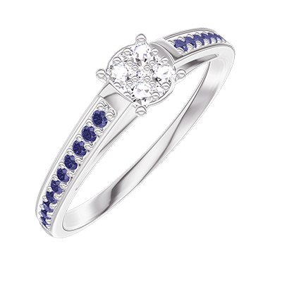 « L'ATELIER » NO. 209615Ring White gold 18 carats - Cluster of natural diamonds round equivalent 0.5 - Setting Blue Sapphire 4.9