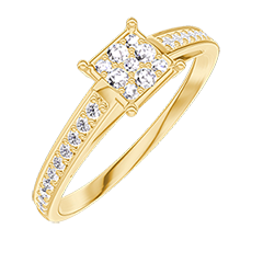 Ring Yellow gold 18 carats - Cluster of natural diamonds Princess equivalent 0.5 - Setting Diamond white