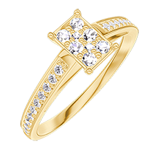 « L'ATELIER » NO. 209805Ring Yellow gold 18 carats - Cluster of natural diamonds Baguette equivalent 0.5 - Setting Diamond white