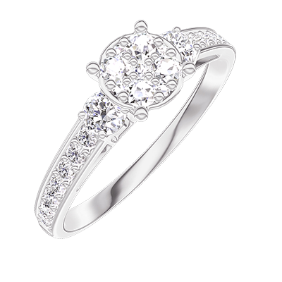 « L'ATELIER » NO. 210227Ring White gold 18 carats - Cluster of natural diamonds round equivalent 0.7 - Ring settings Diamond white - Setting Diamond white 5