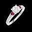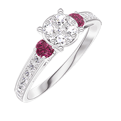 Ring White gold 18 carats - Cluster of natural diamonds round equivalent 0.7 - Ring settings Ruby - Setting Diamond white