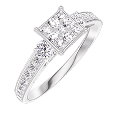Ring White gold 9 carats - Cluster of natural diamonds Princess equivalent 0.7 - Ring settings Diamond white - Setting Diamond white
