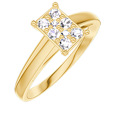 Ring Yellow gold 18 carats - Cluster of natural diamonds Baguette equivalent 0.7