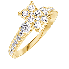 Ring Yellow gold 18 carats - Cluster of natural diamonds Baguette equivalent 0.7 - Ring settings Diamond white - Setting Diamond white