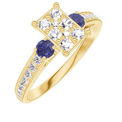 « L'ATELIER » Nº210465Ring Yellow gold 18 carats - Cluster of natural diamonds Baguette equivalent 0.7 - Ring settings Blue Sapphire - Setting Diamond white