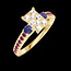 Ring Yellow gold 18 carats - Cluster of natural diamonds Baguette equivalent 0.7 - Ring settings Blue Sapphire - Setting Ruby