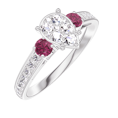 « L'ATELIER » NO. 210647Ring White gold 18 carats - Cluster of natural diamonds Pear equivalent 0.7 - Ring settings Ruby - Setting Diamond white