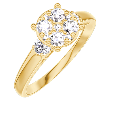 « L'ATELIER » NO. 210822Ring Yellow gold 9 carats - Cluster of natural diamonds round equivalent 1 - Ring settings Diamond white 4.9