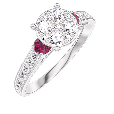 « L'ATELIER » NO. 210848Ring White gold 9 carats - Cluster of natural diamonds round equivalent 1 - Ring settings Ruby - Setting Diamond white 4.9
