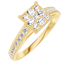 Ring Yellow gold 18 carats - Cluster of natural diamonds Princess equivalent 1 - Setting Diamond white