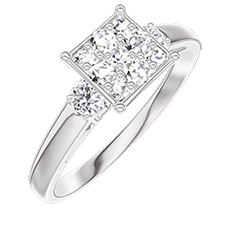 Ring White gold 18 carats - Cluster of natural diamonds Princess equivalent 1 - Ring settings Diamond white