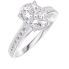 Ring White gold 18 carats - Cluster of natural diamonds Oval equivalent 1 - Setting Diamond white