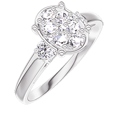 Ring White gold 9 carats - Cluster of natural diamonds Oval equivalent 1 - Ring settings Diamond white