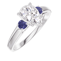 Ring White gold 18 carats - Cluster of natural diamonds Pear equivalent 1 - Ring settings Blue Sapphire