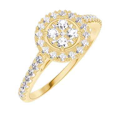 « L'ATELIER » NO. 211405Ring Yellow gold 18 carats - Cluster of natural diamonds round equivalent 0.5 - Halo Diamond white - Setting Diamond white 5