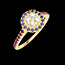Ring Yellow gold 18 carats - Cluster of natural diamonds round equivalent 0.5 - Halo Blue Sapphire - Setting Ruby