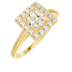 « L'ATELIER » NO. 211449Ring Yellow gold 18 carats - Cluster of natural diamonds Princess equivalent 0.5 - Halo Diamond white 4.6