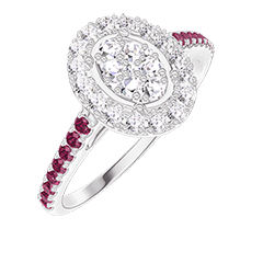 « L'ATELIER » NO. 211556Ring White gold 9 carats - Cluster of natural diamonds Oval equivalent 0.5 - Halo Diamond white - Setting Ruby 4.8