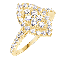 « L'ATELIER » NO. 211646Ring Yellow gold 9 carats - Cluster of natural diamonds Marquise equivalent 0.5 - Halo Diamond white - Setting Diamond white