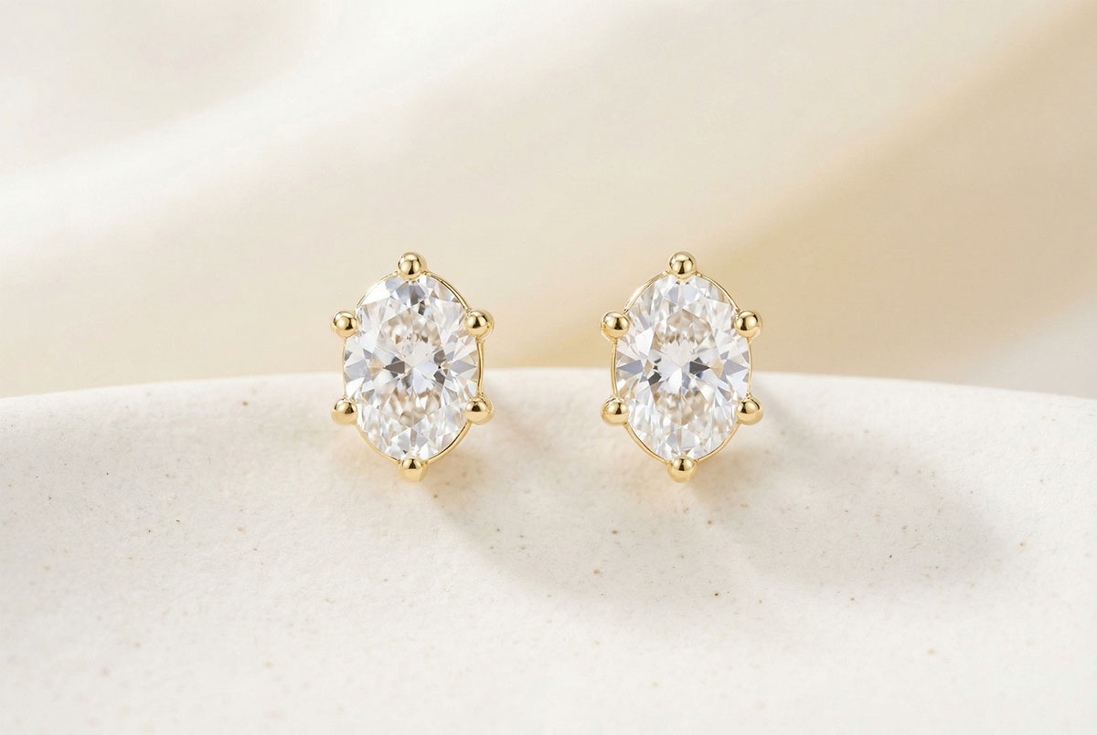 « L'ATELIER » NO. 403493Earrings Yellow gold 9 carats - Laboratory Diamond Oval 0.3 Carats (2 X)