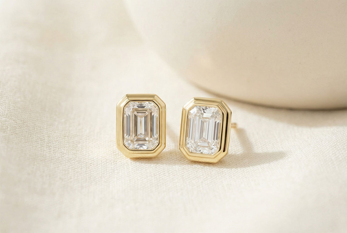 « L'ATELIER » NO. 403849Earrings Yellow gold 9 carats - Laboratory Diamond Baguette 0.3 Carats (2 X)