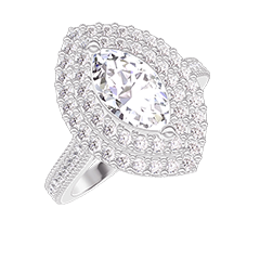 « L'ATELIER » NO. 407377Ring White gold 9 carats - Laboratory Diamond Marquise 0.5 Carats - Halo Laboratory Diamond - Setting Laboratory Diamond