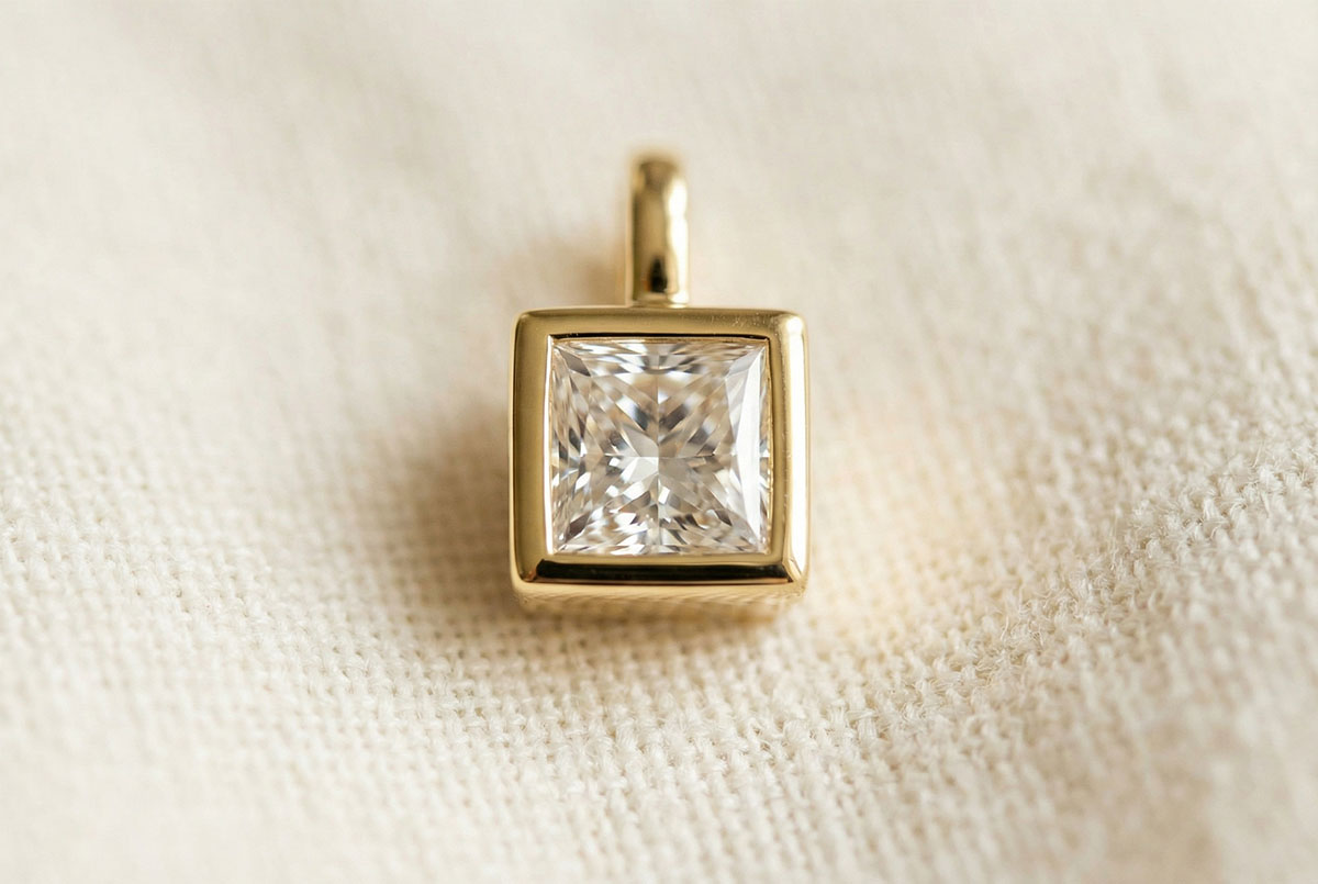 « L'ATELIER » NO. 409600Pendant Yellow gold 18 carats - Laboratory Diamond Princess 0.3 Carats - No Chain