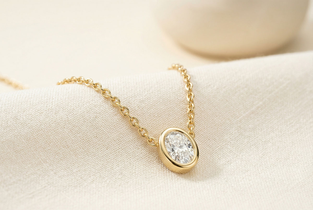 « L'ATELIER » NO. 413610Necklace Yellow gold 9 carats - Laboratory Diamond Oval 0.3 Carats - Chain Rolo