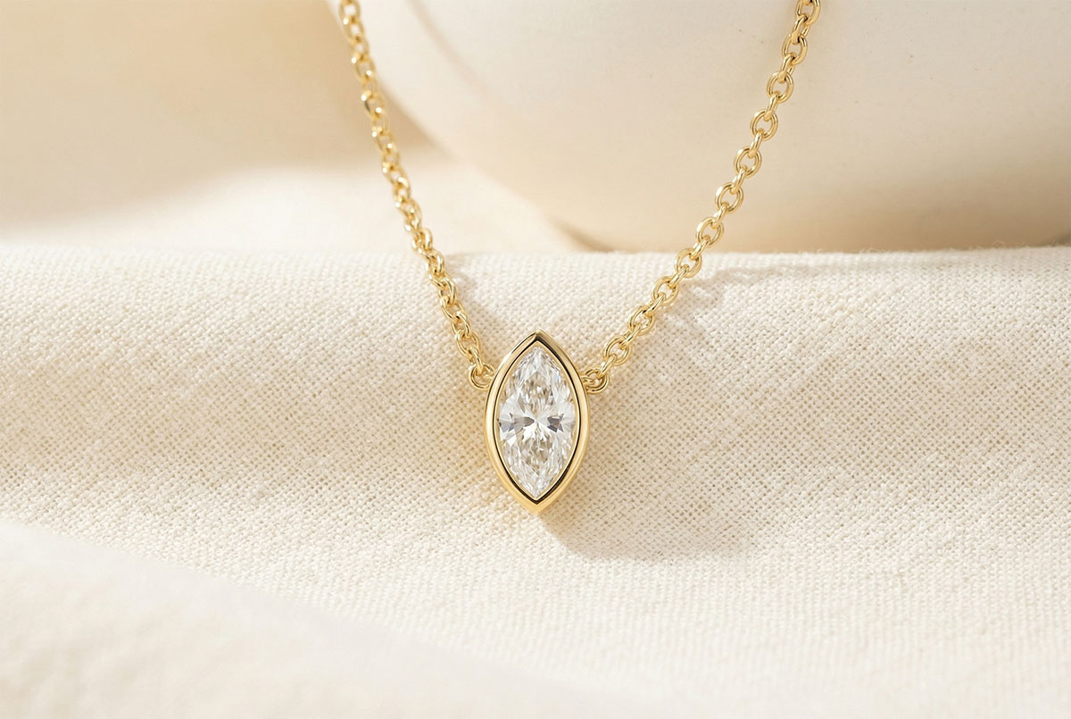 « L'ATELIER » NO. 413628Necklace Yellow gold 9 carats - Laboratory Diamond Marquise 0.3 Carats - Chain Rolo