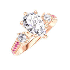 Ring Pink gold 9 carats - Laboratory Diamond Pear 0.7 Carats - Ring settings Laboratory Diamond - Setting Pink Sapphire