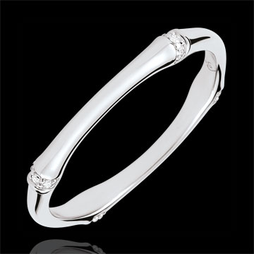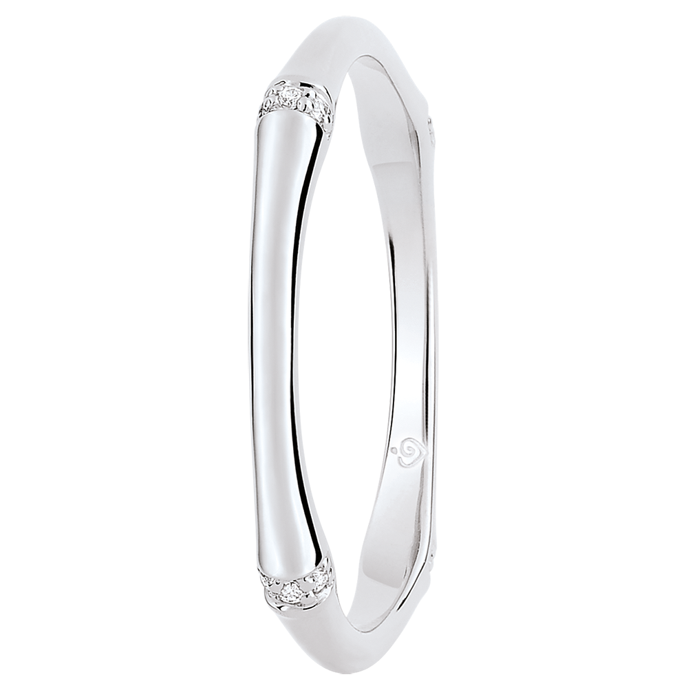 A strong and supple kind of bamboo which is fashioned into a yellow gold diamond set eternal ring.