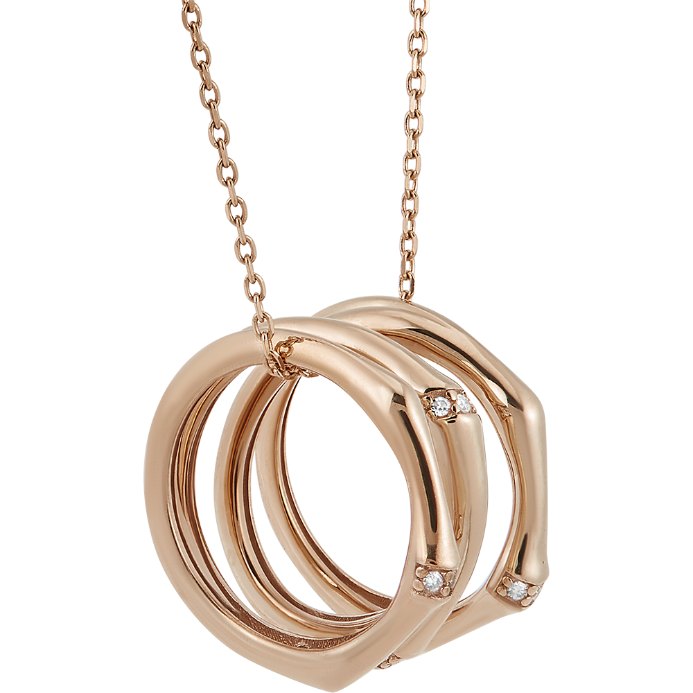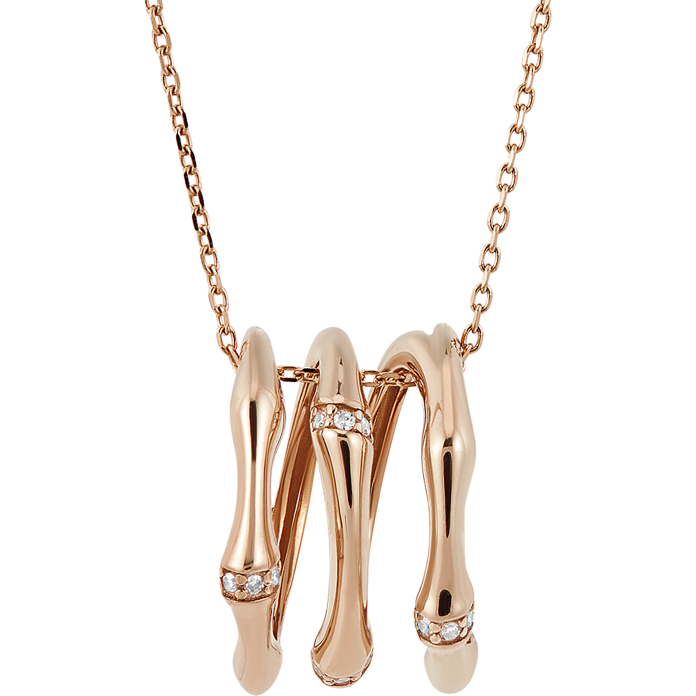 A branch of strong, supple bamboo wrapped over 3 rows is transformed into an eternal necklace. The bamboo knots are inlaid with diamonds in gold.