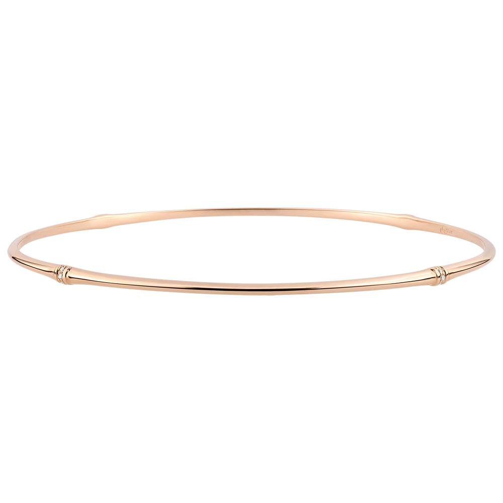 A strong and supple kind of bamboo which is fashioned into an eternal bracelet. The nodes of the bamboo are encrusted with diamonds in pink gold.