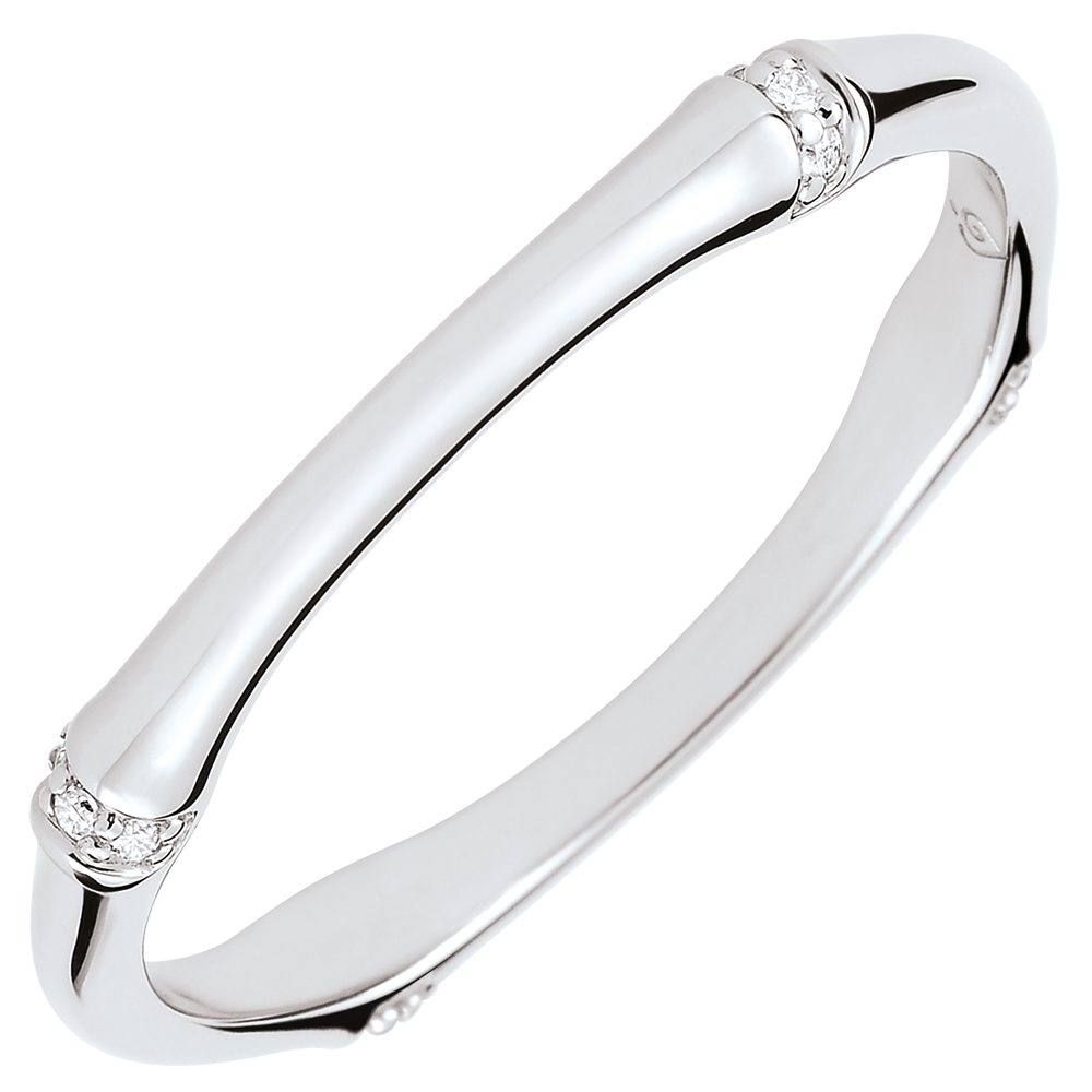 A strong and supple kind of bamboo which is fashioned into a yellow gold diamond set eternal ring.