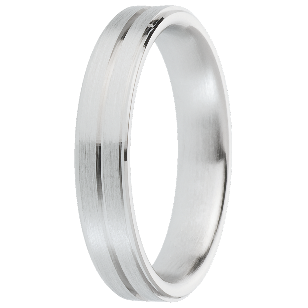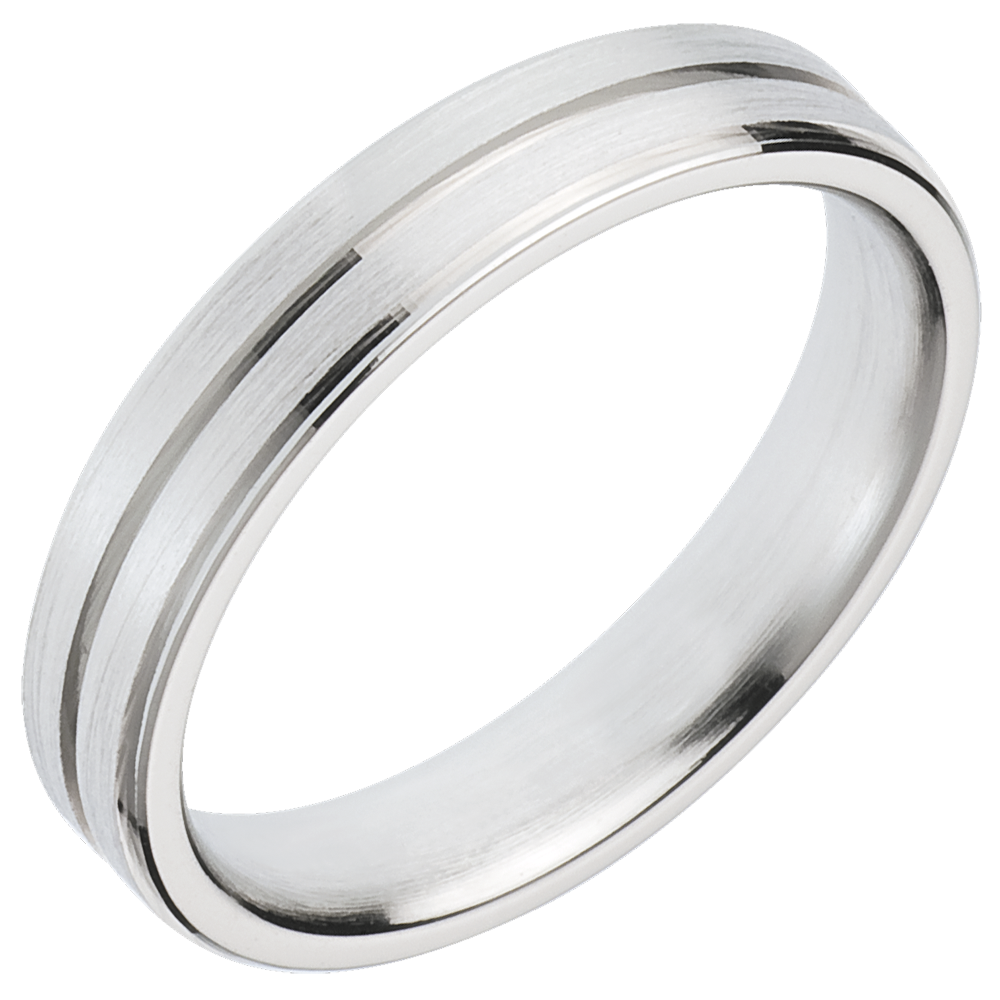 A strong and lively white gold ring, outlined twice.