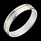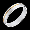 A white gold ring is permeated by a strand of yellow gold in an understated union.