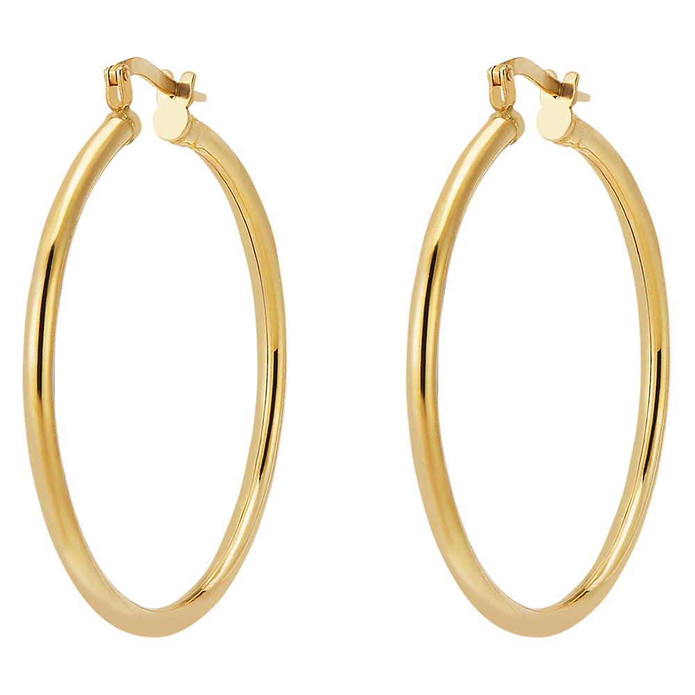 A pair of hoop earrings with a diameter of 30mm. 2mm thick hollow gold wire.