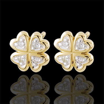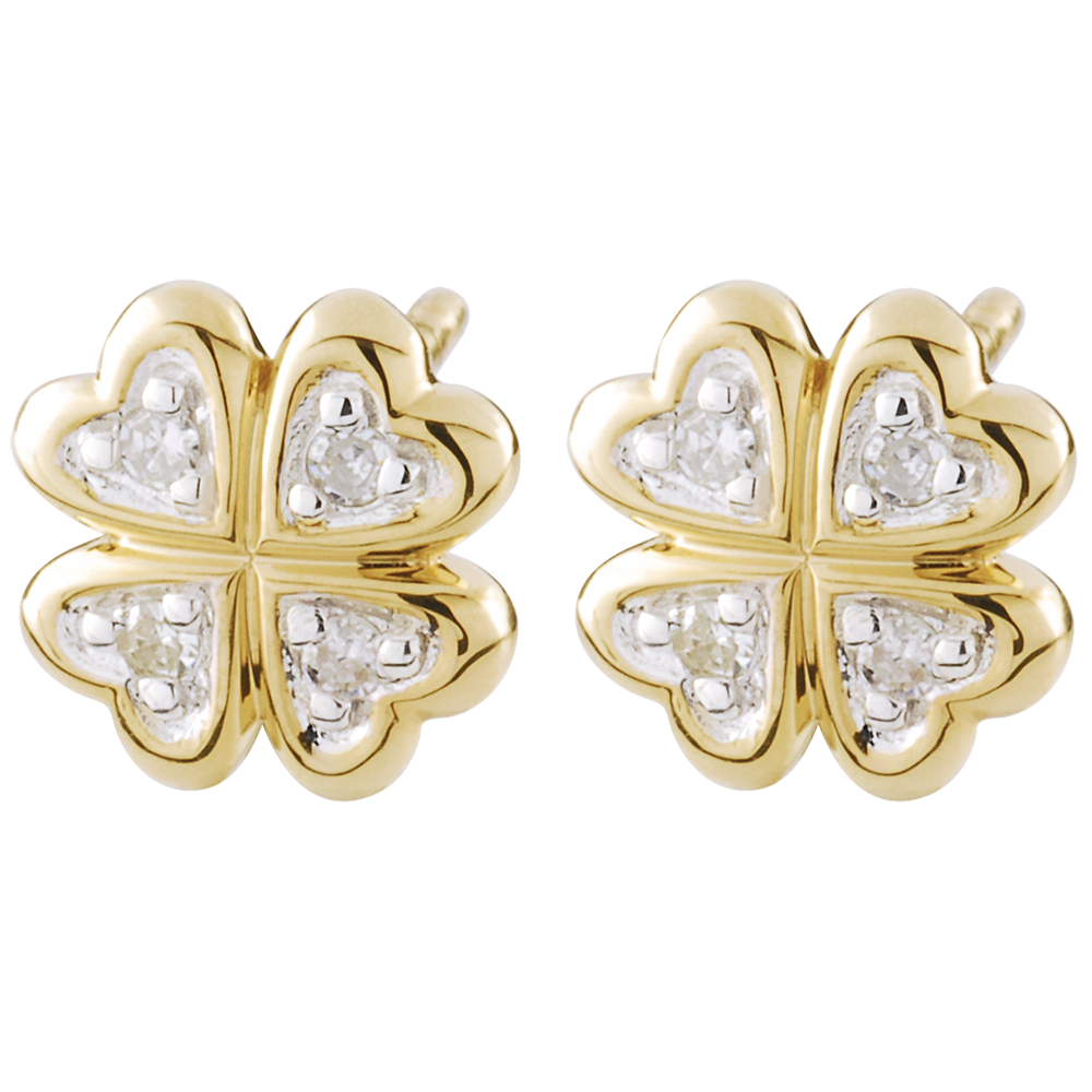 The lustre from the diamonds in these clover-shaped diamond stud earrings , will bring you luck. 8 diamonds : 0.05 carat - White and Yellow Gold (9K Gold = 375/-): 0.7 g. More dimensions