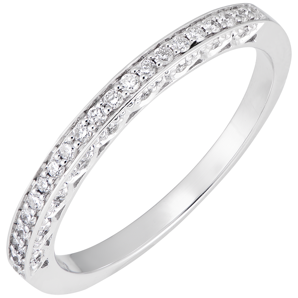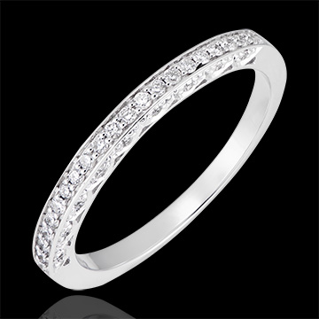 A semi-diamond ring, portraying subtlety and originality with its small diamonds which are set on the edge of the mount.
