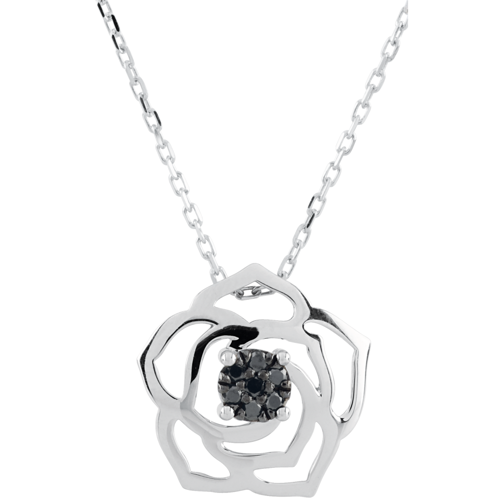 A rose in whole contours features a precious heart of black diamonds