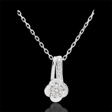 The petals of the rose are open on a diamond heart for eternity With gold chain 750/- . 10 diamonds : 0.05 carat - White gold (18K Gold = 750/-): 2.8 g. Cluster of natural diamonds : - More dimensions