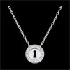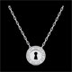 A heart necklace in white gold bearing a lock is mounted on a white gold chain covered with two diamonds.